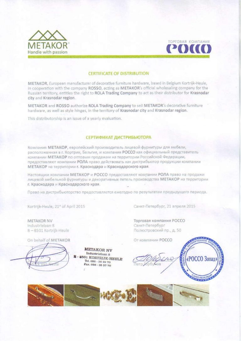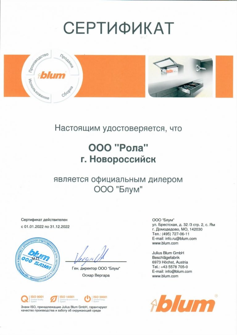 В настоящее время сфера нашей деятельности — торговля мебельной фурнитурой и комплектующими от ведущих мировых производителей: «BLUM», «METAKOR», «FIERAMOSCA», «VIBO» и др. Благодаря сотрудничеству с австрийской компанией «BLUM», мировым лидером в сфере разработок, производства и продажи фурнитуры для кухонной и корпусной мебели высочайшего качества, мы можем предложить нашим клиентам широкий ассортимент систем выдвижения, петель и подъемных механизмов, а также станков и приспособлений для их монтажа. Компания «Рола» является официальным дилером «BLUM» в Краснодарском крае.